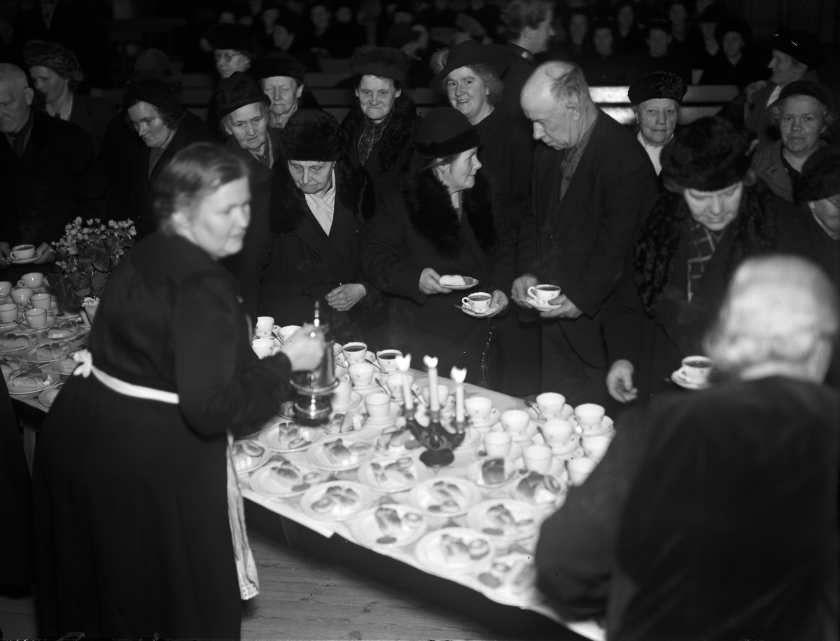 "Livligt kring kaffeborden" på Frälsningsarméns traditionella julfest för "behövande och gamla", S:t Persgatan 20