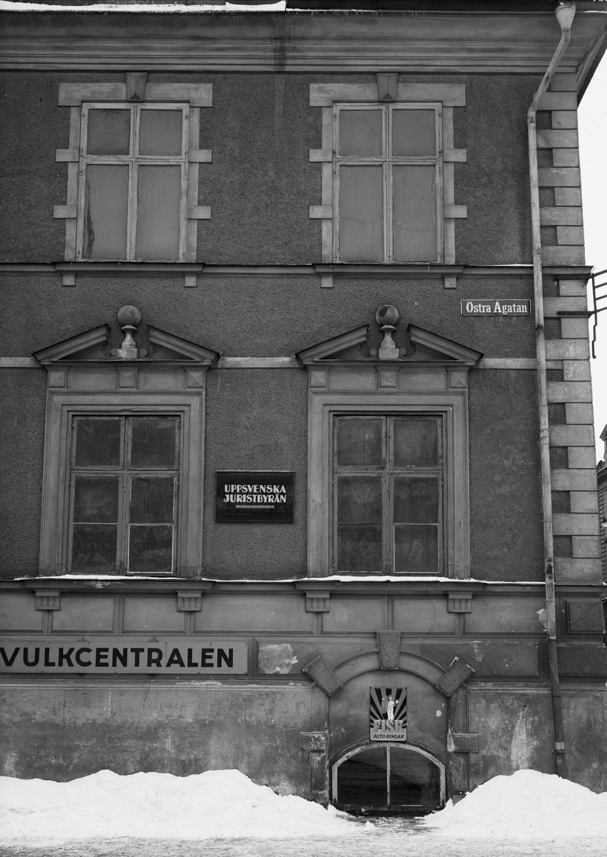 Theatrum Oeconomicum, gavel mot Östra Ågatan, kvarteret Torget, Uppsala mars 1940