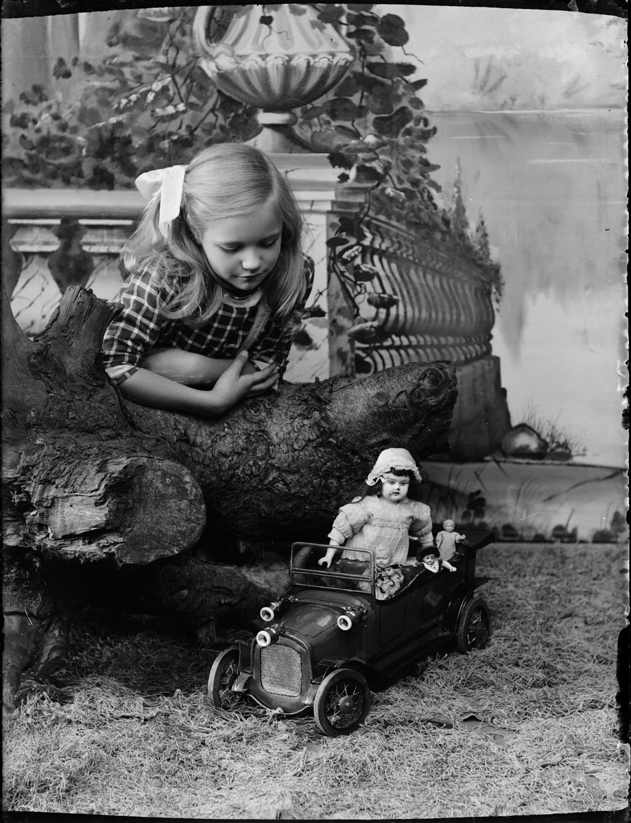 Ateljéporträtt - Tyra med dockor och leksaksbil, Östhammar, Uppland