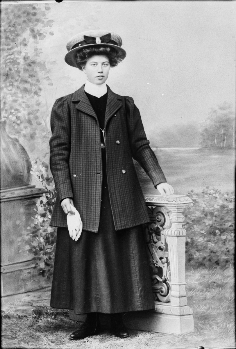 Ateljéporträtt - kvinna i hatt, Östhammar, Uppland