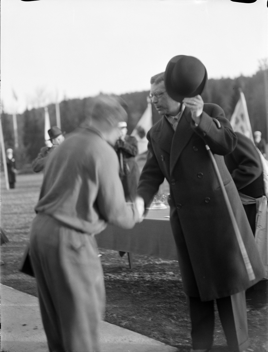 Kronprins Gustav Adolf delar ut priser i samband med återinvigningen av Studenternas Idrottsplats