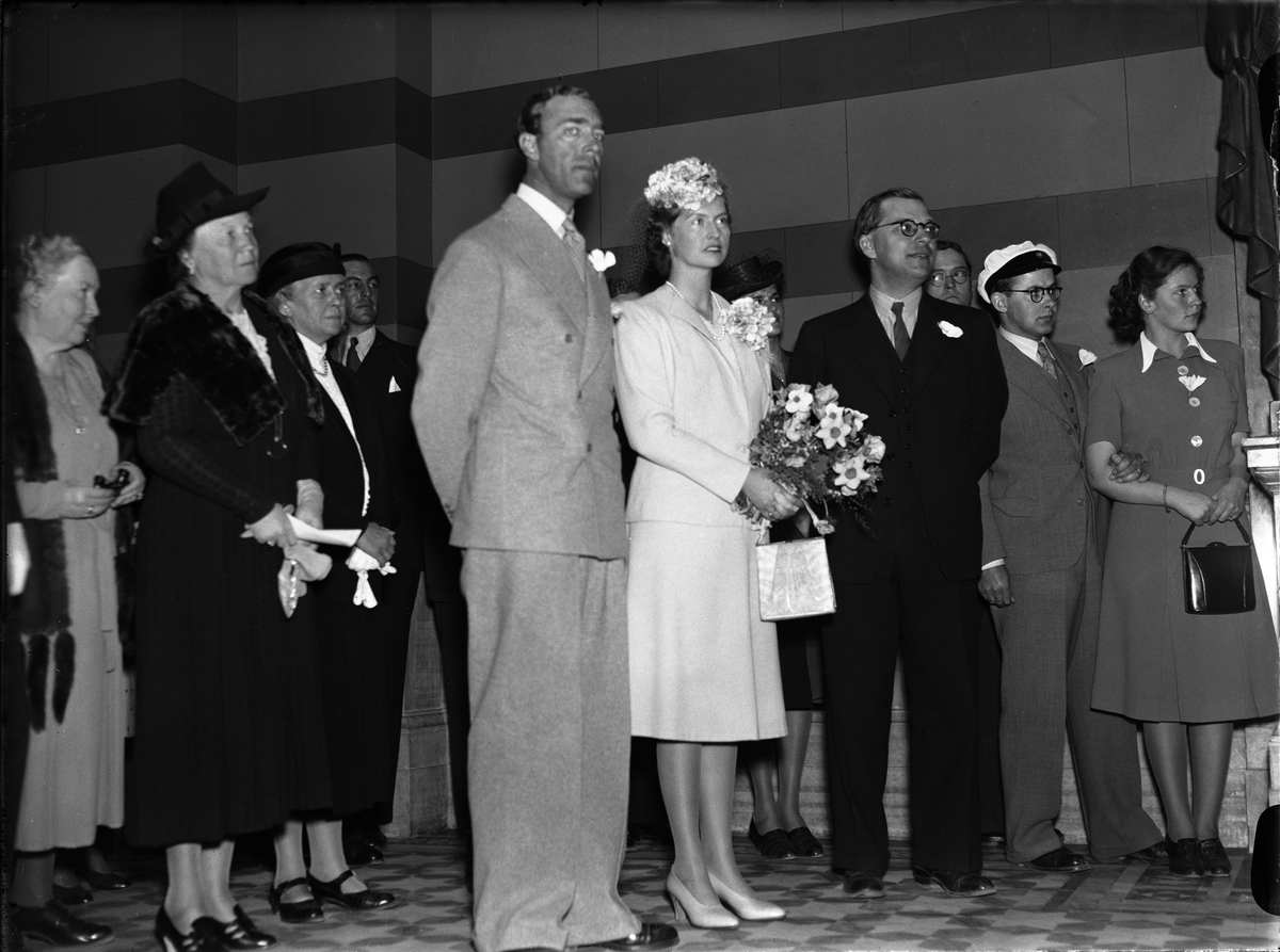 "Vårfesten i Upsala nordiskt betonad" - prins Gustaf Adolf, prinsessan Sibylla och Gösta Knutsson på 'Trappmarschen' i Universitetshuset, Uppsala 1942