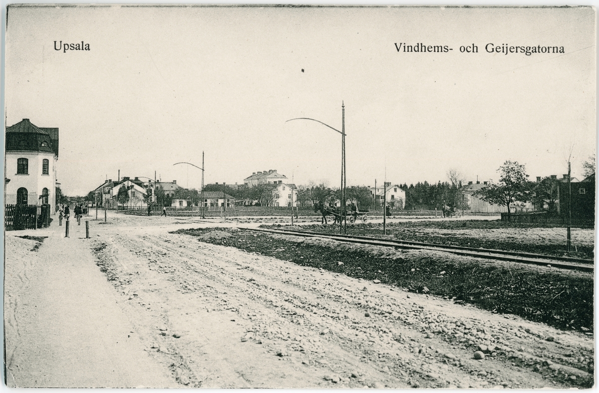 Brevkort - Geijersgatan som korsas av Vindhemsgatan, Uppsala