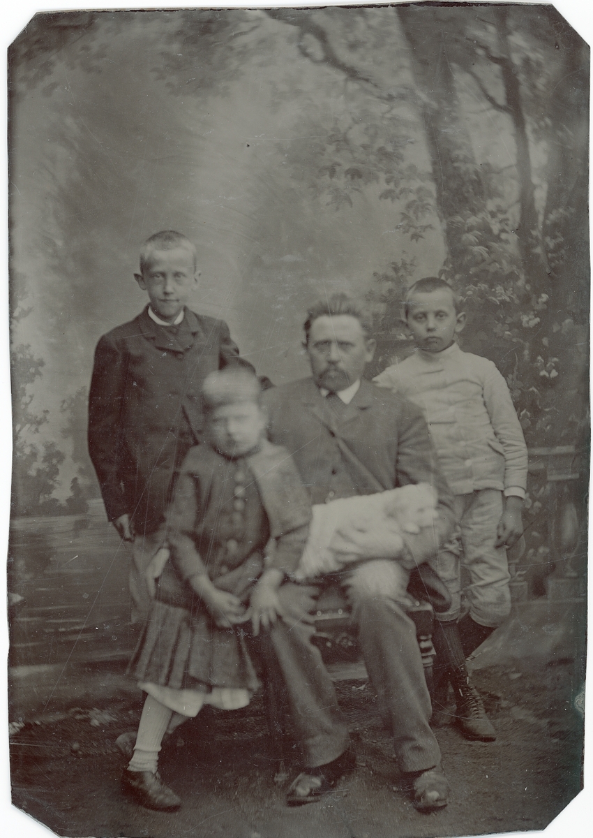 Ferrotyp - Erik Nyman med barnen Axel, Walle och Maja, Uppsala