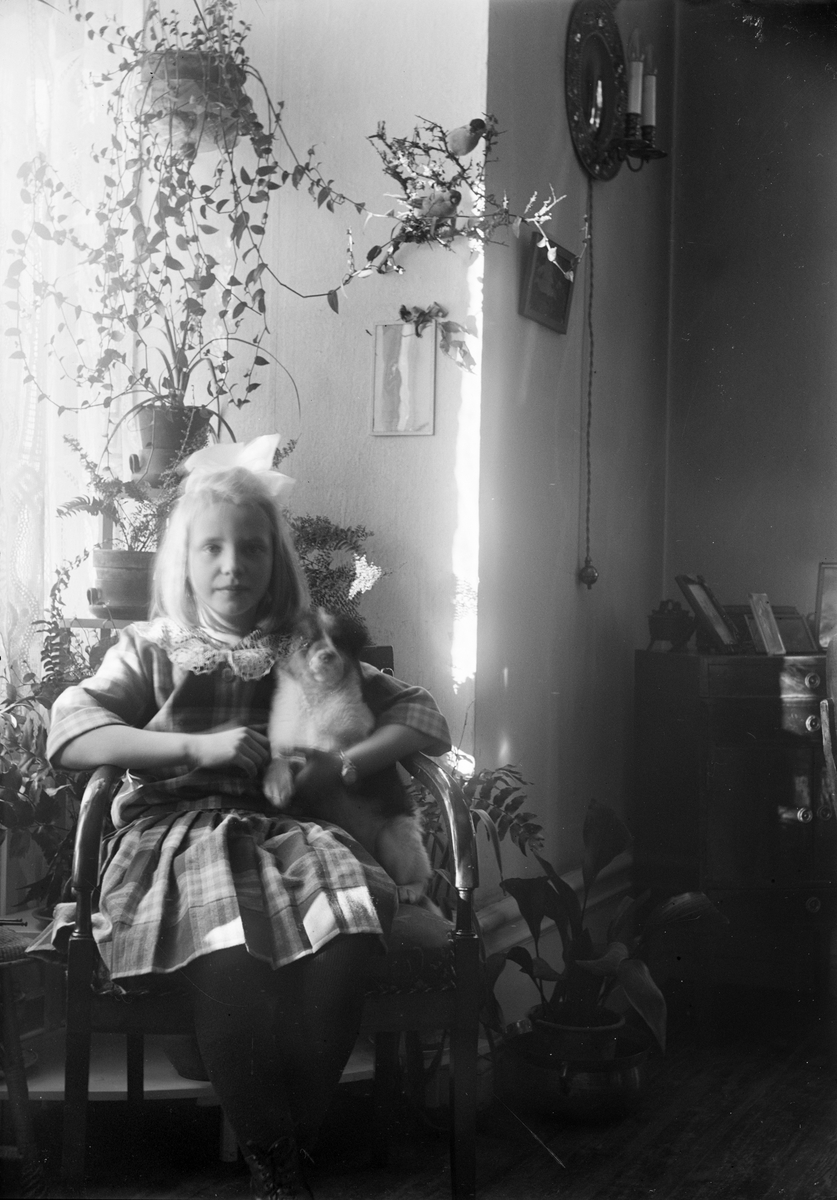 Titel: Ruben Liljefors dotter Marit med hundvalp i hemmet i Sverige
