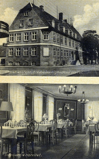 Tryckt text på bilden: "Christiansfeld, Brödremenighedens Hotel".