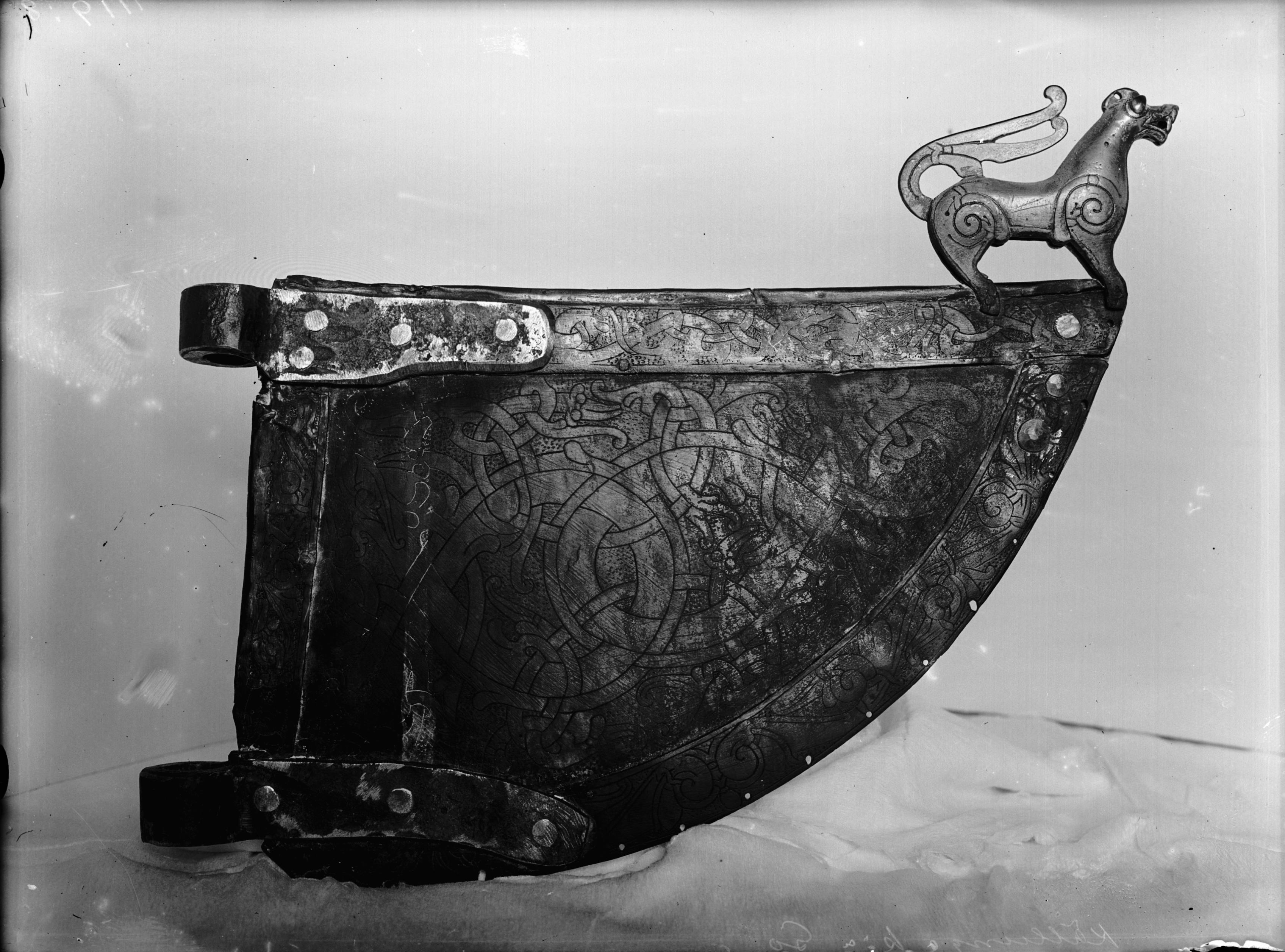 Flöjel av brons, ursprungligen på ett hövdingefartyg. Från början av 1000-talet.