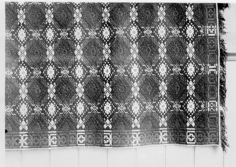Del av ett finnvävstäcke daterat 1822 med mönster som benämndes "Rosor och grenar".