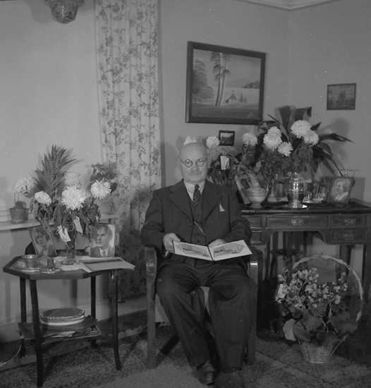 Text till bilden: "Sven Lindqvist, Liden 52. 70 år 1945.12.08".