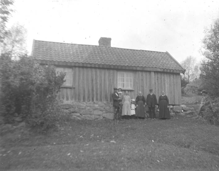 Enligt notering: "En grupp framför huset. Möre: Elsa, Sten, Signe, Viola, Jonas, Hilda".