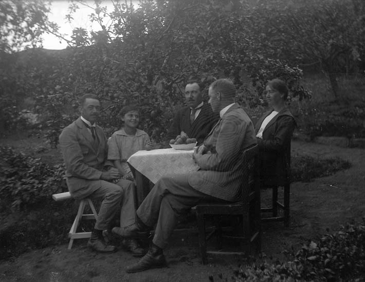 Enligt notering: "Fem vuxna i bersån, Axel Johansson, Valborg Alm, Oskar Alfredsson, Gustav, Olena Johansson Gökalla".