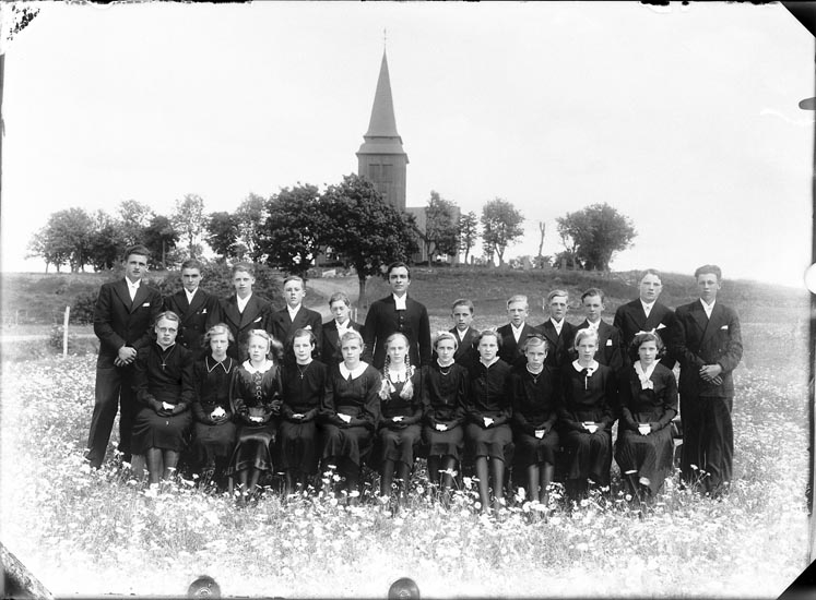 Enligt fotografens anteckningar: "1940, 34. Komminister Rhedins konfir. grupp-barn. Förminskat."
