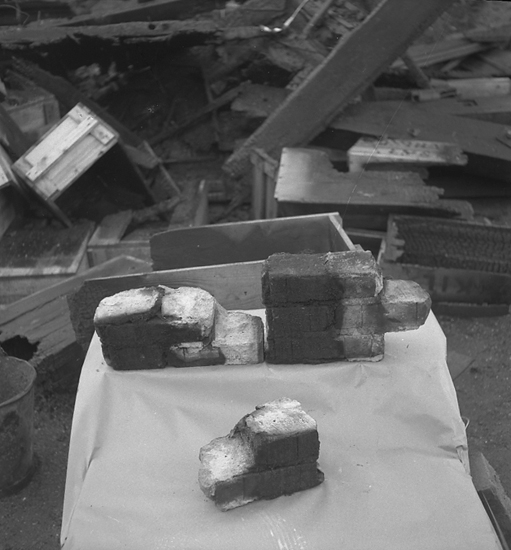 Text till bilden: "Branden i Richters fabrik. 1946.11.12".