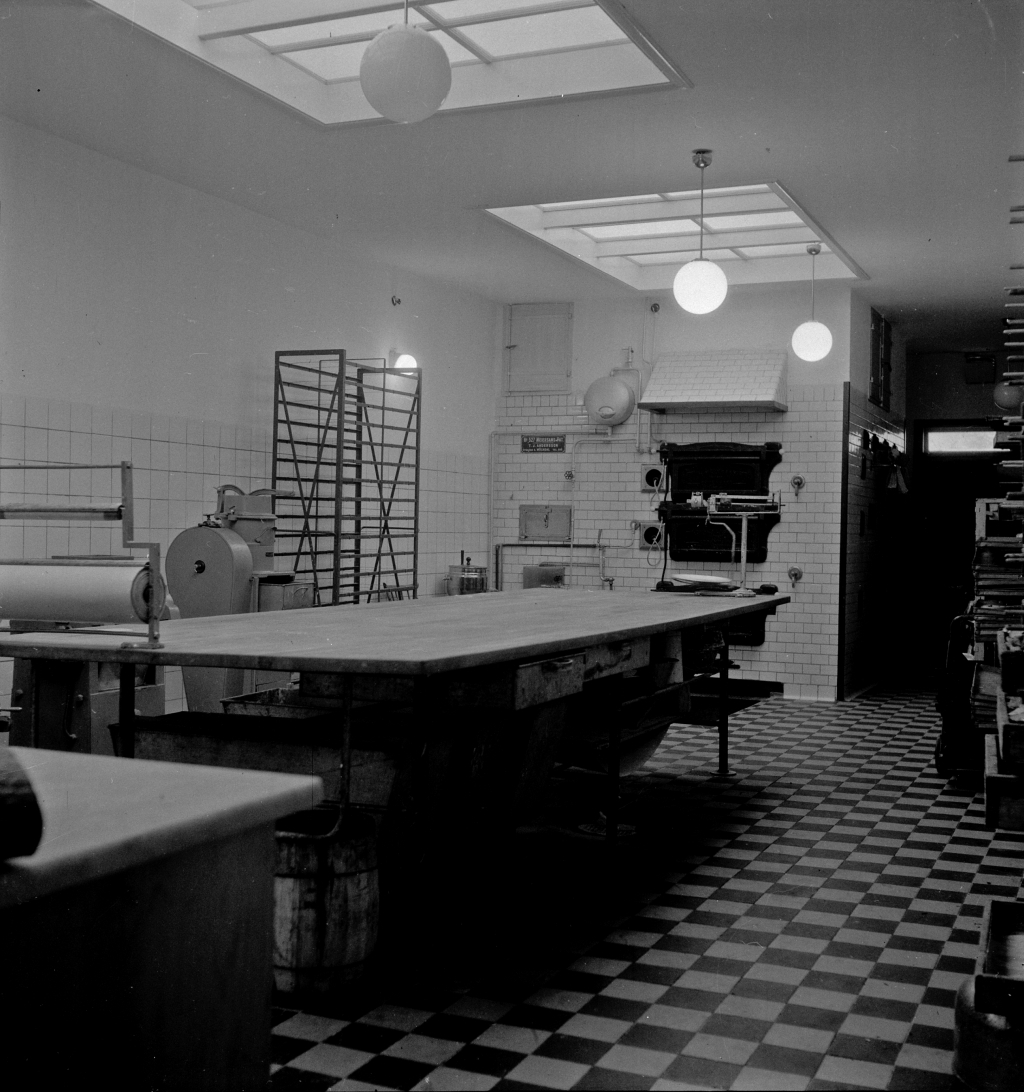 Interiör bageri. Maskinell utrustning möjligen tillverkade vid Lysekils Mekaniska verkstad.