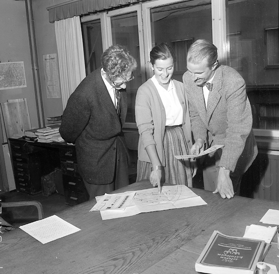 Enligt notering: "Ritningar studeras på Tidningen Aug 57".