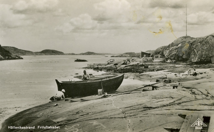 Text på kortet: "Hälleviksstrand. Friluftsbadet".