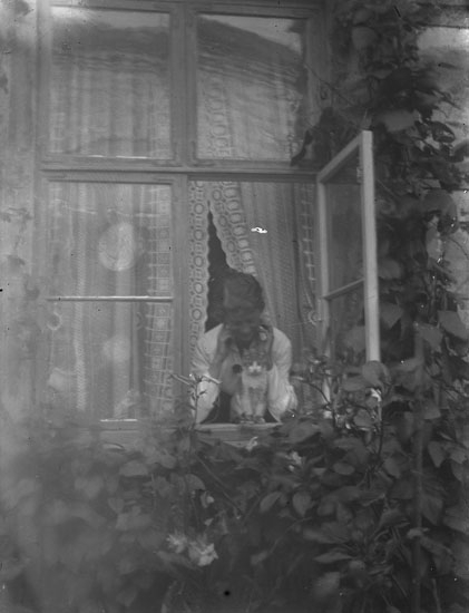 Enl. text i blå bok: "Dam i öppet fönster."