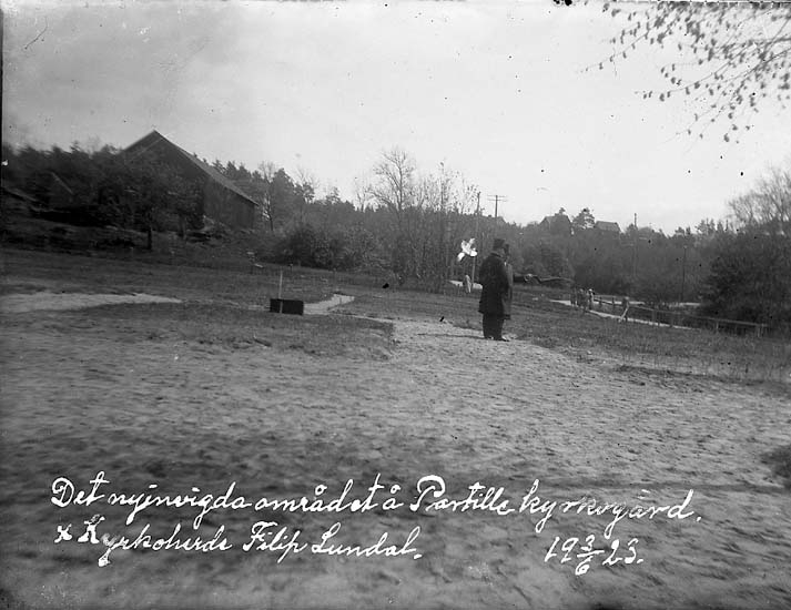 Enligt text på fotot: "Det nyinvigda området å Partille kyrkogård. x kyrkoherde Filip Lundal. 3/6 1923".