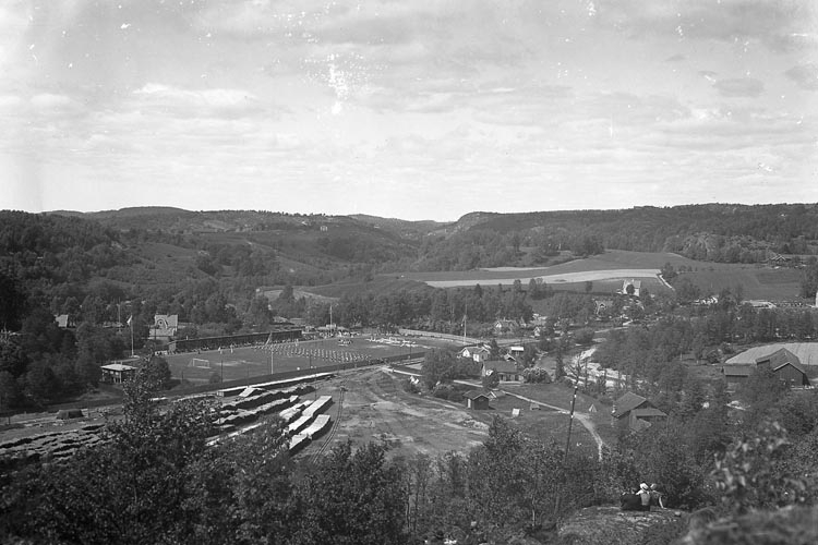 Enligt fotografens noteringar: "1933. Till vykort 25 öre. Från Kåvarneberget, Skottene Idrottsplats."