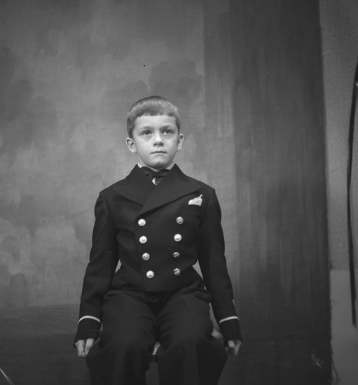Text till bilden: "Pojke i sjömanskostym. Fru Karlsson. 1940.01.02".