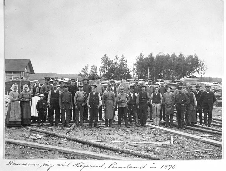 Text på kortet: "Hansson såg vid Högerud, Värmland år 1896".