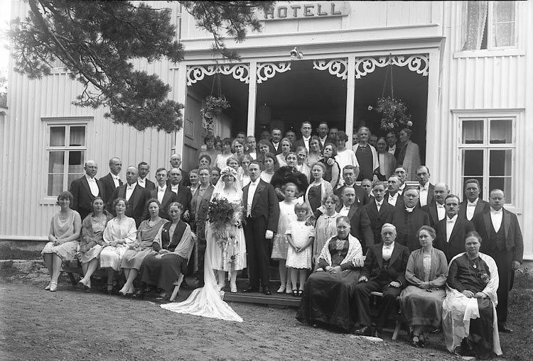 Enligt fotografens journal nr 5 1923-1929: "Rehnberg, Brudparet Hotellet Här".