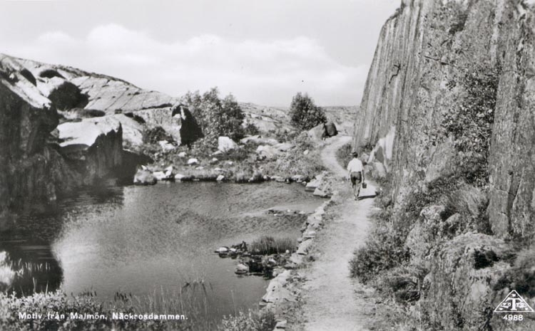 Tryckt text på kortet: "Motiv från Malmön. Näckrosdamm".