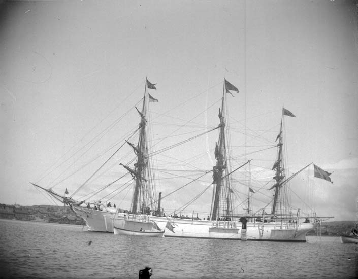 Enligt text som medföljde bilden. "Lysekil. Övningsfartyget "Najaden" liten parad