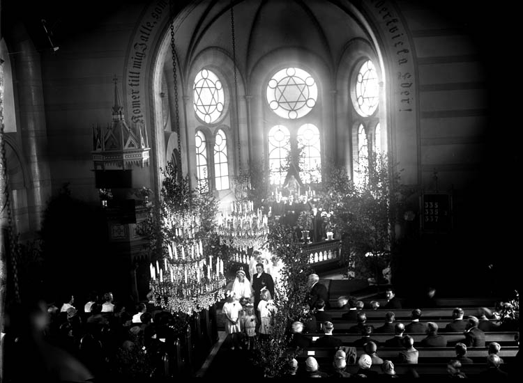 Enligt tidigare noteringar: "Interiör från kyrka, koret vid bröllop."