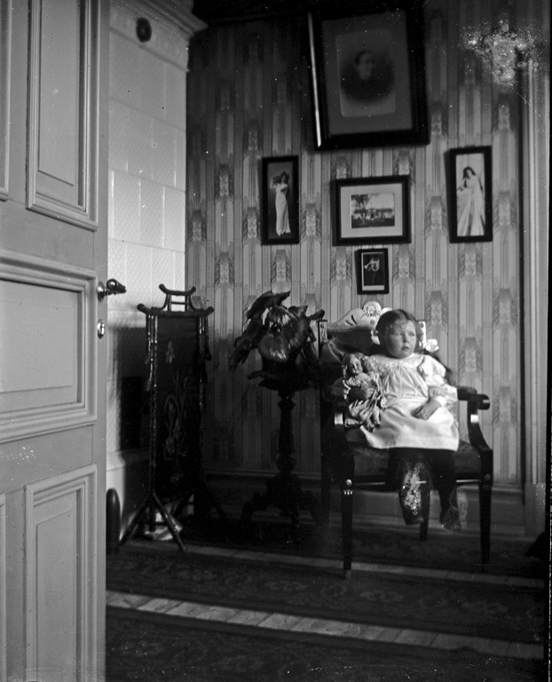 Text till bilden:"Interiör. Barn i stol".