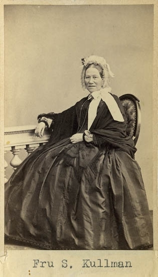 Text på kortets baksida: "Fru Sofie Magdalena Kullman, född Sanne. F. 1801. G. m. Sjökapten o handlaren Anders Reinhold Kullman".