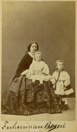 Text på kortets baksida: "Friherinnan Rosen med Frits o Carl".
