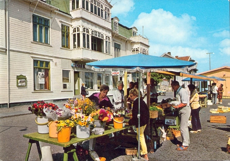 Tryckt text på kortet: "Marstrand. Salustånd vid kajen."