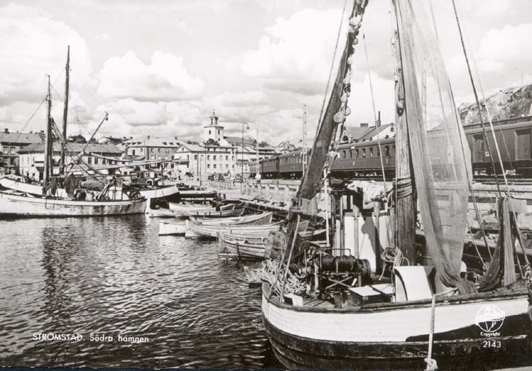 Tryckt text på kortet: "Strömstad. Södra Hamnen."