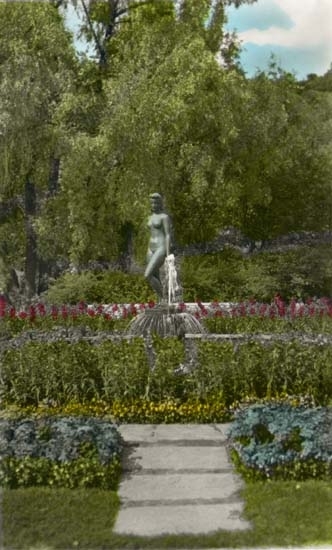 Tryckt text på kortet: "Uddevalla. Margaretgärde, Flickan med flätor."