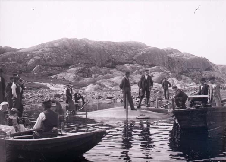 Två döda valar som bärgats i Brofjorden.