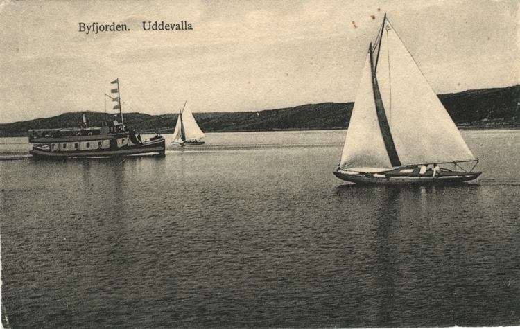 Tryckt text på vykortets framsida: "Byfjorden. Uddevalla."