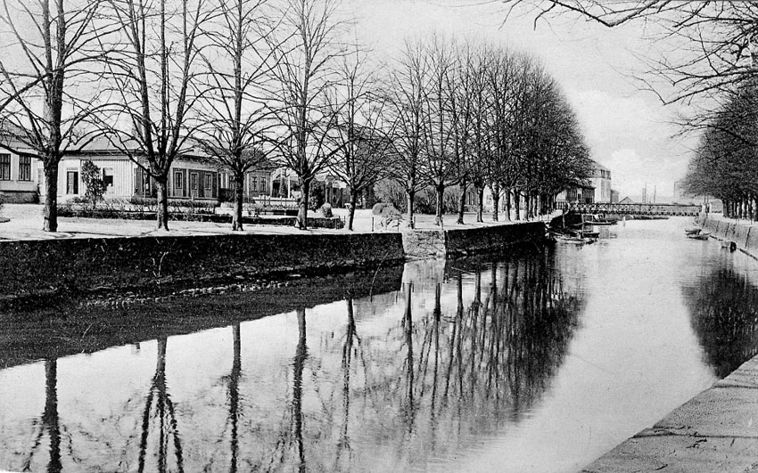 Tryckt text på vykortets framsida: "Uddevalla Bäfveån".