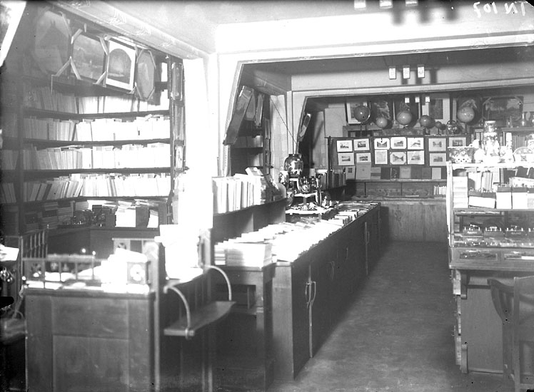 Enligt senare noteringar: "Interiör, Hallmans Bok- och Pappershandel, Uddevalla."