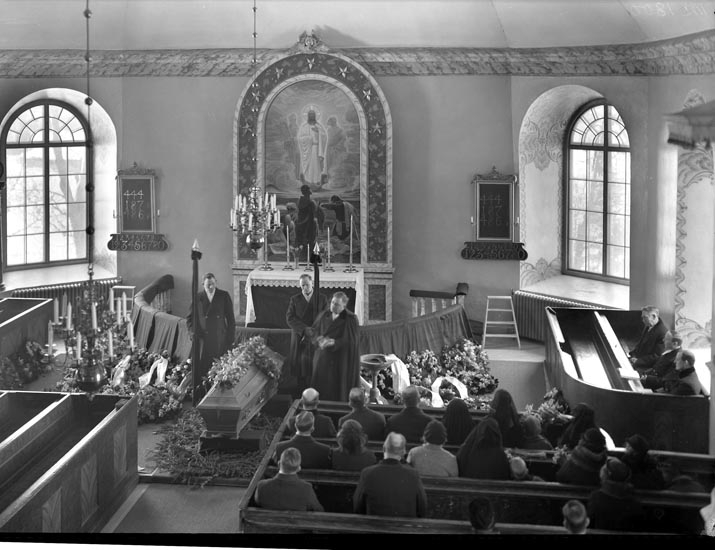 Uppgift enligt fotografen: "Herrestad. Begravning i kyrkan. Frk. Boström."