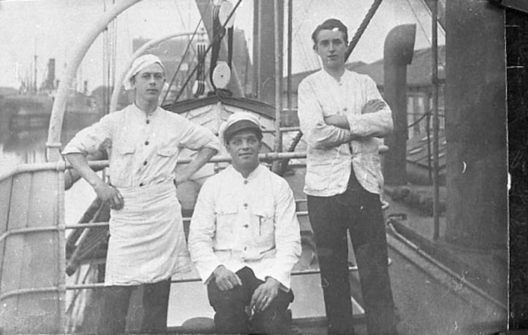 Bildtext till kopian i fotoalbumet: "Stående fr.vä: Eskil Åback, Mårten Säfström. f. 1901".