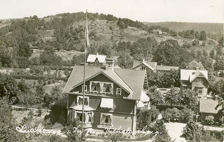 Enligt Bengt Lundins noteringar: "Vy från Vilhelmsberg. Corona m fl. Torpet Valås i fonden (blev kaffestuga)".