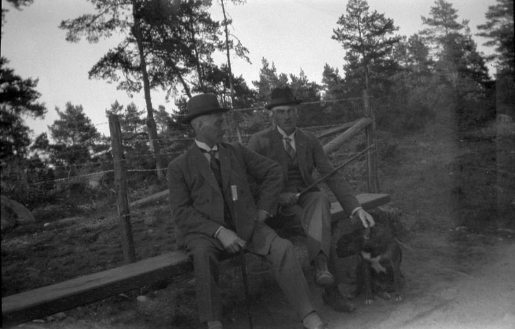 Enligt tidigare noteringar: "Två män sittande på staketmur."