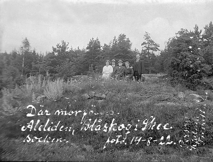 Johans text på fotot: "Där mor föddes. Aleliden, Blåskog i Skee socken, foto. 14/8 1922."