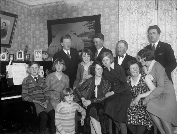 Enligt senare noteringar: "Hos Viktor Johansson i Ed. Fr. v.: Arne och Maja Johansson, Henry Hansson, Judith Johansson, Nils Vålander, Viborg (Johansson), Maja Hansson, Inga Vålander, Johan Börjesson-Eld. Längst ner Valborg Johansson".