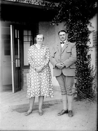 Föreståndare Asplund i porten till Kampstorp Försörjningshem