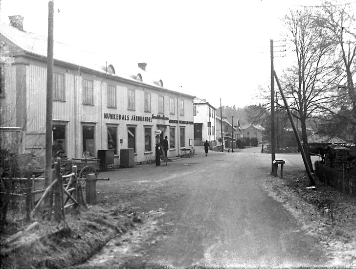 Enligt noteringar: "Hanssons affärsfastighet vid järnvägsstationen. Affärshuset mot vägen byggdes 1926 som tillbygge på det gamla från 1904. Närmast bakom, posthuset byggt 1933." (BJ)