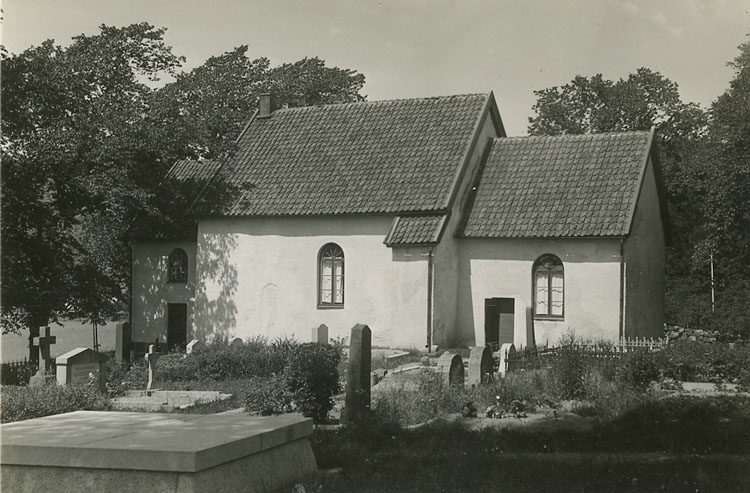 Enligt Bengt Lundins noteringar: "Resteröds Kyrka. Kyrkogårdssidan.