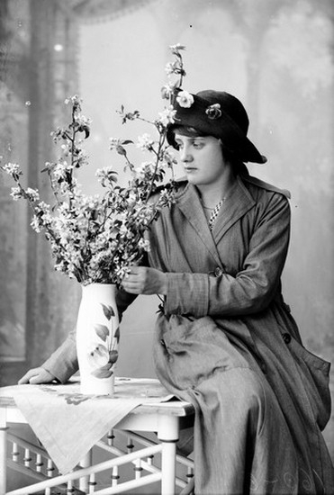 Ateljefoto, kvinna med blomstervas