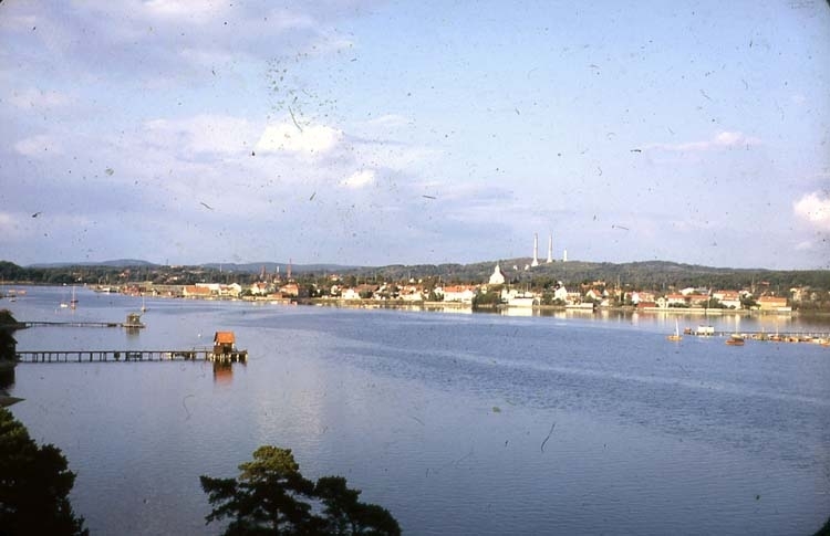 Titel: Stenungsunds gamla centrum 1961-1962 från Stenungsön. Strandlinjen (Sundet).